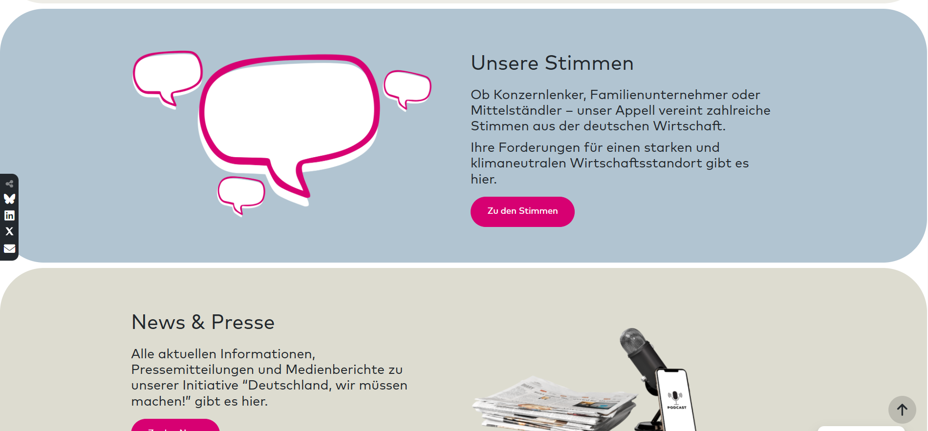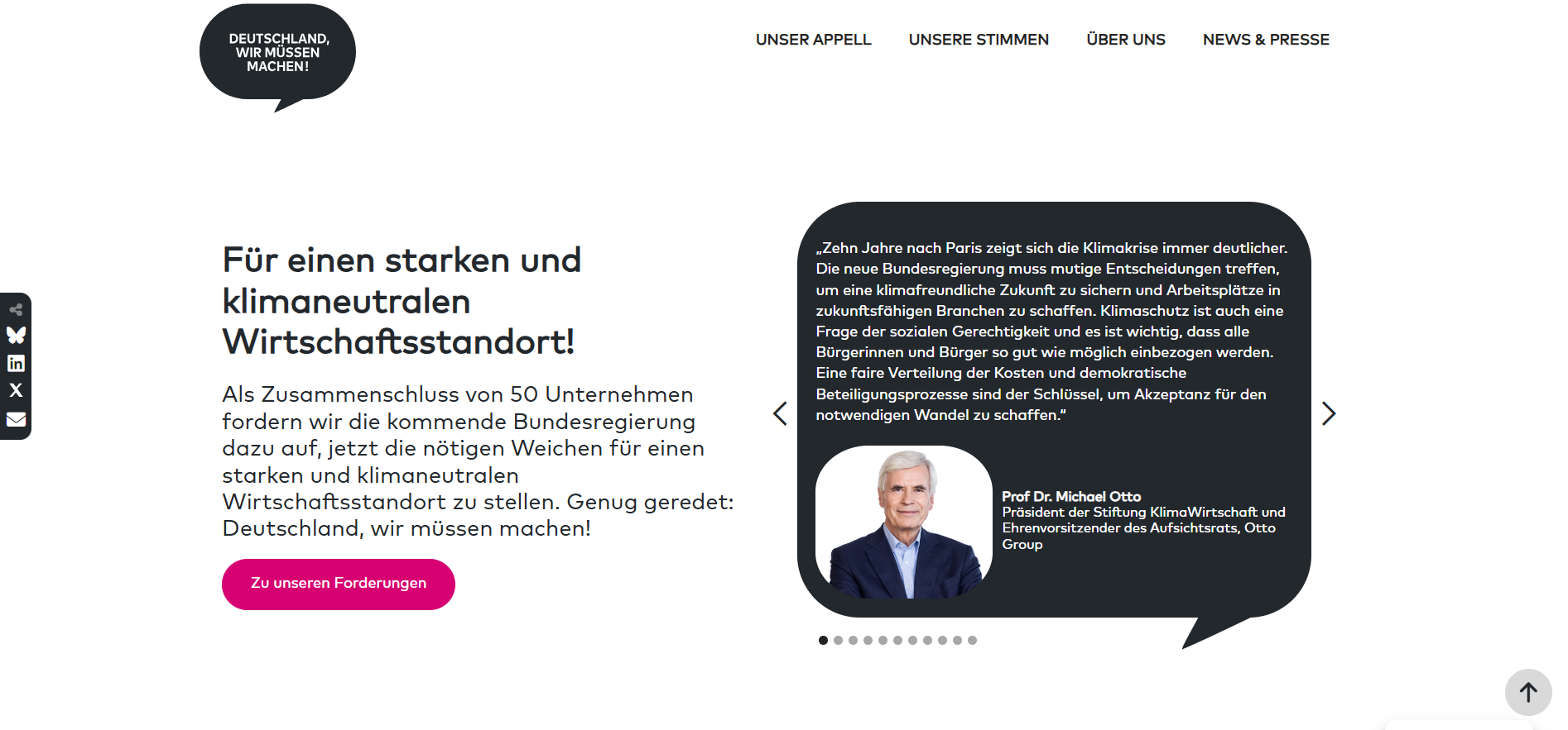 We designed and developed the microsite Wir Müssen Machen, to amplify the voices of business leaders urging the German government to accelerate public investment in sustainable infrastructure and systems.